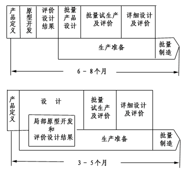 產(chǎn)品開(kāi)發(fā)是一個(gè)從市場(chǎng)獲得需求信息,據(jù)此構(gòu)思產(chǎn)品開(kāi)發(fā)方案,最終形成產(chǎn)品投放市場(chǎng)的過(guò)程。雖然在產(chǎn)品開(kāi)發(fā)過(guò)程中并非所有步驟都可以平行進(jìn)行,但根據(jù)對(duì)產(chǎn)品開(kāi)發(fā)過(guò)程的信息流分析,可以通過(guò)一些工作步聚的平行交叉,大大縮短產(chǎn)品開(kāi)發(fā)時(shí)間。例如:日本NEC公司將某種產(chǎn)品原本歷時(shí)6--8個(gè)月的開(kāi)發(fā)過(guò)程,通過(guò)并行重組縮短為3個(gè)半月,如圖1。