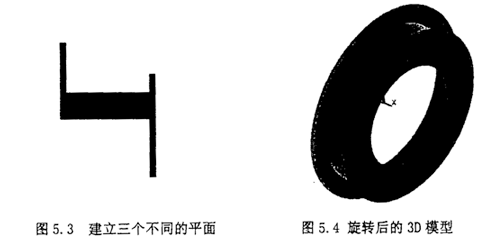 通過旋轉(zhuǎn)面繞X軸旋轉(zhuǎn)生成3D模型,生成體模型后切換視圖方向,可用從不同的角度觀察圖形,命令為“PlotCtrls>Pan Zoom Rotate”結(jié)果如5.4所示。