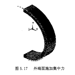 選擇Main Menu>>Solution>Define Loads>Apply>Structural>Force>Moment>On Nodes,在圓環(huán)外端面最上方的圓的節(jié)點上依次施加集中力,結(jié)果如圖5.17所示。