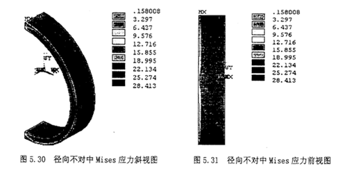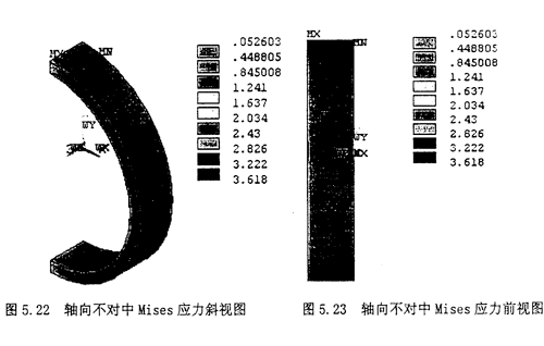 2.顯示節(jié)點的Von Mises應(yīng)力云圖;選擇Main Menu>General Postproc>Plot Result>NodalSolu,在彈出的對話框內(nèi)選擇“Stress”,第二欄內(nèi)選擇“Von Mises Stress”,則其顯示的云圖如圖5.22,5.23所示