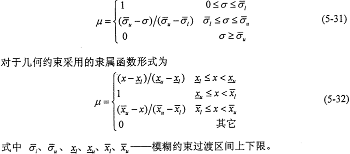 結(jié)合前面計(jì)算結(jié)果,利用式(5-39),求出最優(yōu)水平截集λ*=0.5875。從而將模糊優(yōu)化問(wèn)題轉(zhuǎn)化為常規(guī)優(yōu)化問(wèn)題。