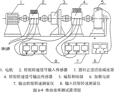 機械傳動件的性能是工程界十分重視的一個問題,它直接影響產(chǎn)品成本及能源消耗,每個設(shè)計師都希望自己設(shè)計的機器是一臺高效率,噪聲低,振動小,溫升低的機械。但是,由于機器結(jié)構(gòu)等因素的影響,實際機器很難達到理想的計算效率及其它設(shè)計參數(shù),實際機器效率受加工精度和裝配精度及使用條件等因素影響將低于計算效率,這就需要進行試驗研究,以測量實際機器的效率值和與其相關(guān)的參數(shù),給傳動裝置的選擇及改進設(shè)計提供數(shù)據(jù)。為此,本文對圓柱正弦活齒減速器樣機進行了傳動比及傳動效率試驗研究,試驗裝置的工乍原理如圖6-9所示。試驗臺的實物照片如圖6-10所示。