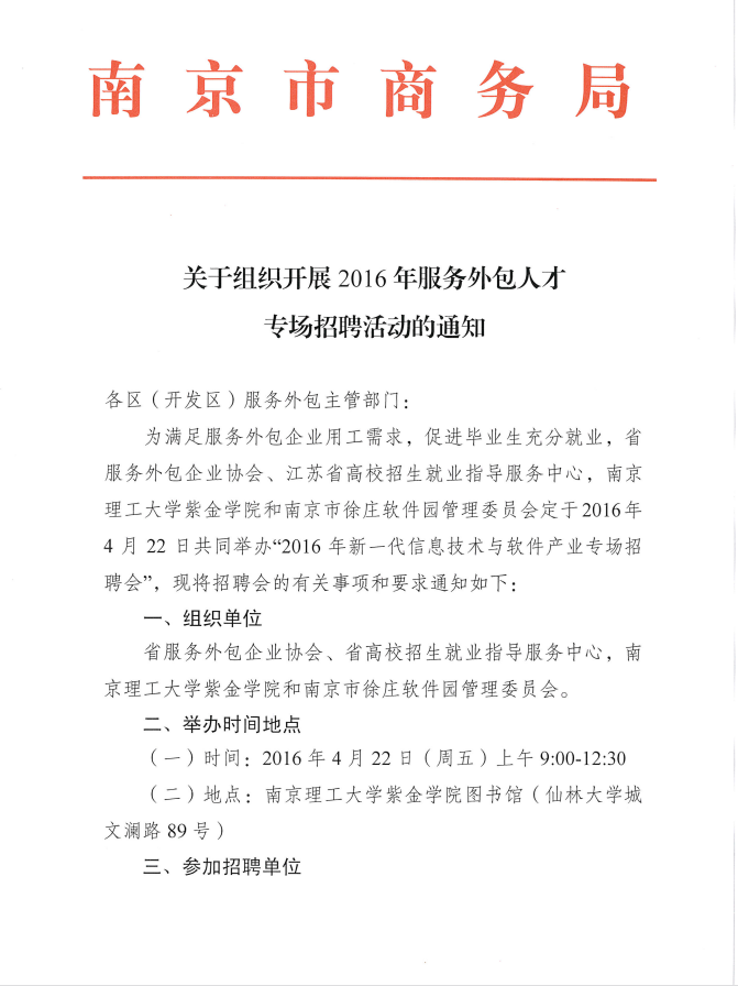 關(guān)于組織開(kāi)展2016年服務(wù)外包人才專場(chǎng)招聘活動(dòng)的通知