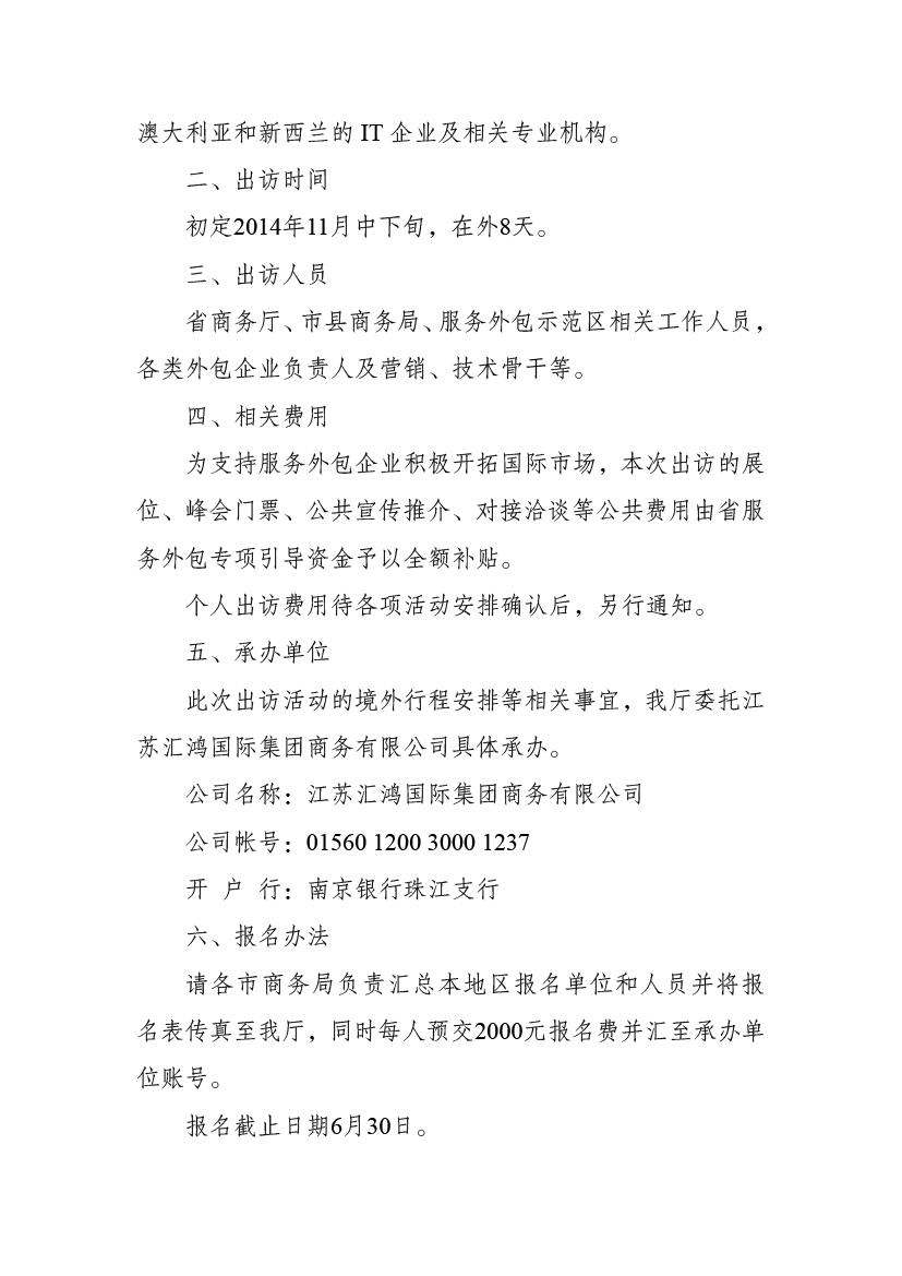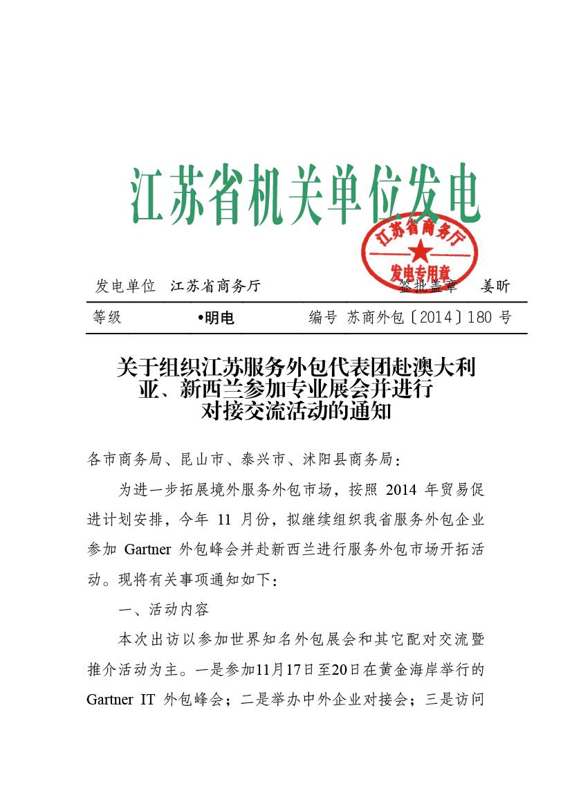 關(guān)于組織江蘇服務(wù)外包代表團(tuán)赴澳大利亞、新西蘭參加專業(yè)展會(huì)并進(jìn)行對接交流活動(dòng)的通知